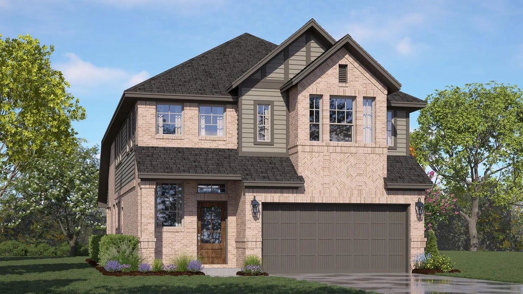 The Sedona Plan -Elegant Earth tone designer features include 42" light barley colored cabinetry. White and grey quartz countertops. Matte white picket mosaic tile backsplash. Matte black cabinet hardware, plumbing & light fixtures. Primary retreat offers an oversized walk in shower and a large vanity with double sinks. Black iron stair parts open to the second floor. Oversized extended back patio option with spray texture flooring & a gas line for a future outdoor kitchen. Modern 4-lite upgraded black mahogany wood front door. 2" faux wood blinds. Full sprinkler system. Garage door openers. Tankless water heater. And so much more.