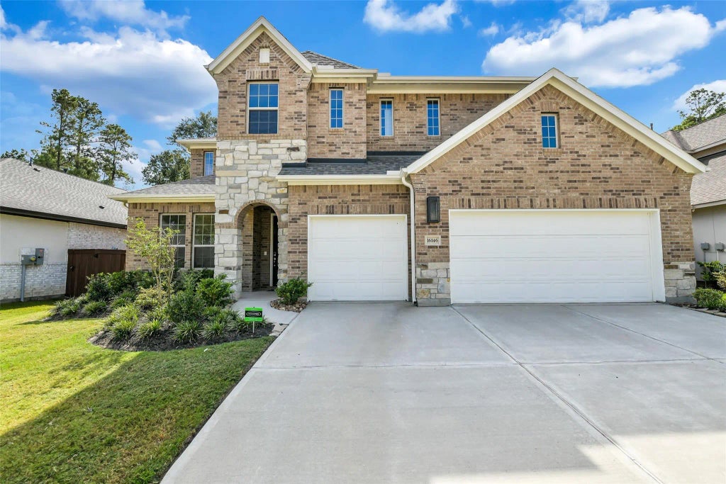 Discover Good Natured Living in the Brand-New Master Planned Community of Evergreen! Located off SH-242 and tucked behind a plethora of trees lies a retreat ready to welcome you home. This fabulous two-story home is wrapped with brick and stone, surrounded by lush landscaping, and rests on a 60’ lot. This two-story plan features 5 bedrooms, 4 full and 2 half bathrooms, a study, and open concept layout complemented with high ceilings. A kitchen with Built-In Kitchen Aid Appliances, a large island, and a plethora of designer cabinetry will have you excited to cook and serve no matter the occasion! Fusing indoor and outdoor entertainment is simple with sliding glass doors and an extended covered patio. Retreat to a Primary Suite with a large bathroom with dual vanities, garden tub, and glass enclosed shower. Upstairs includes 3 secondary bedrooms, and the ultimate entertainment space: a game room and media room. All of this and more await you. Come Live the Difference with Shea Homes!