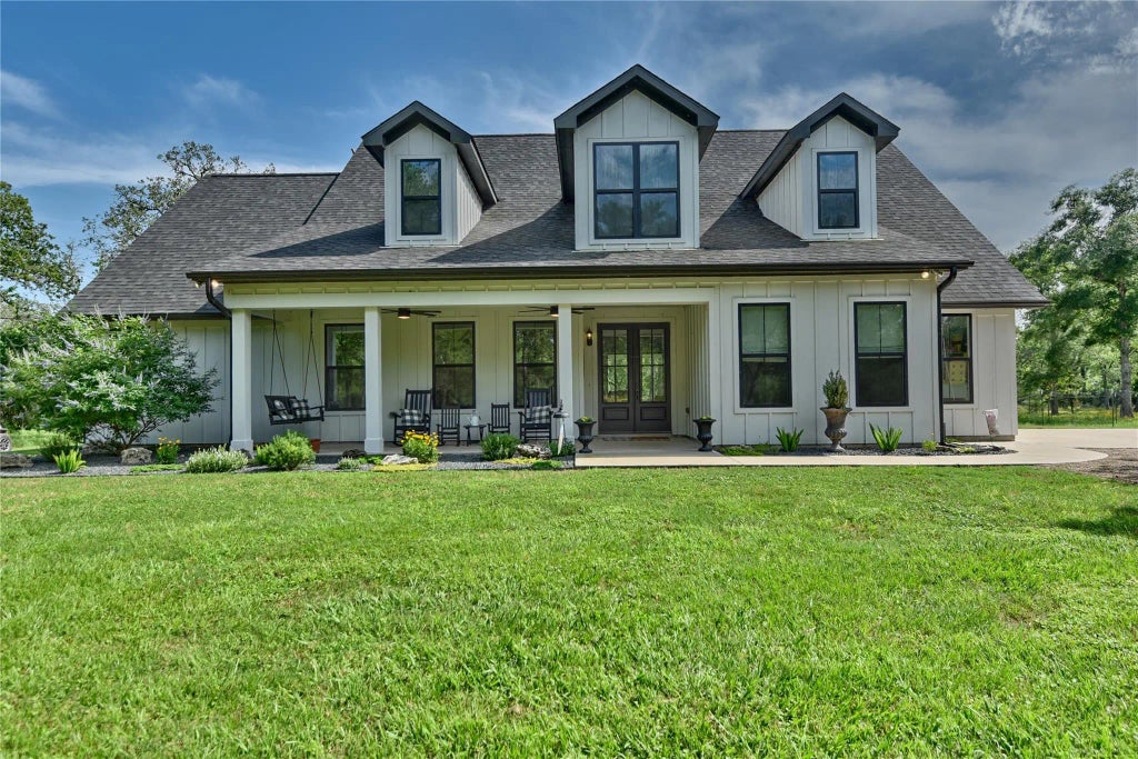 This stunning, recently built modern farmhouse is nestled on 28.54 wooded acres. The home is approximately 2626 sq ft with 4 beds, 3 baths, and a private office with built ins. The spacious kitchen has a large walk-in pantry and a huge island with gorgeous quartz countertops. The large and naturally lit living room features a stacked stone fireplace surrounded by built-ins. The secluded primary bedroom boasts a luxurious on-suite bathroom with two vanities, oversized shower with double shower heads, and a walk-in closet. The two secondary bedrooms have walk-in closets and are joined by a Jack and Jill bathroom. The fourth bedroom has a wall murphy bed with custom built-ins, perfect for your guests or as a multipurpose space. The enormous utility room has tons of cabinets, a space for folding clothes, and a mud space. The property features beautiful wildflowers, variety of towering trees, abundant wildlife, 2 ponds, and a 550 sq ft cabin for guests or potential income producing rental.