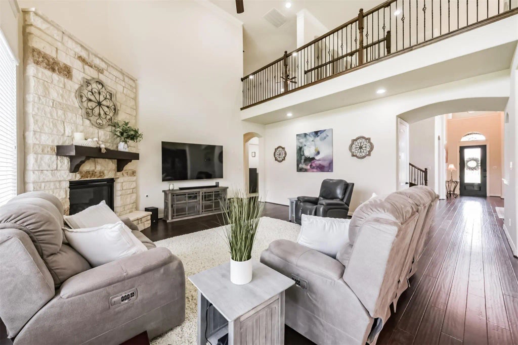 Welcome to your private sanctuary—902 Longleaf Ct, tucked inside the exclusive gated community of Creekwood Estates. This stunning home is set apart from the hustle and bustle of the desirable City of Friendswood. Step inside to a grand foyer with soaring ceilings and abundant natural light. Rich hardwood floors flow throughout the main level, leading you past a private office with French doors, formal dining, walk-in pantry, and stylish coffee or dry bar. The chef’s kitchen opens to an airy living room anchored by a striking stone fireplace. What makes Longleaf unique is its rare layout: a spacious primary suite plus a secondary bedroom on the first floor—ideal for guests or multigenerational living. An elegant wrought iron staircase leads upstairs to three more bedrooms with walk-in closets, a media room, and a game room—perfect for entertaining. Zoned to the coveted FISD. Don’t miss the chance to make Longleaf your Home Sweet Home!