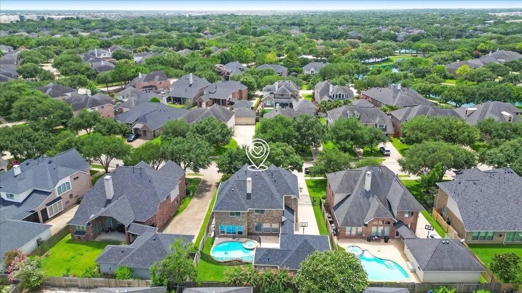 NEW ROOF, 3 year old HVAC. Experience refined living with wide plank engineered hardwood floors that flow seamlessly throughout, including the elegant staircase. The gourmet kitchen showcases rich cabinetry, stainless appliances, gas range, double oven, water softener, and new dishwasher. A spacious laundry room offers abundant storage and a convenient chute. The impressive primary suite features remote-controlled blinds, a lighted tray ceiling, and a spa-inspired bath with a large shower and a custom closet with built-in safe. Upstairs, enjoy a plush game room with new carpet and built-ins with a data center desk. Outdoors, unwind by the sparkling pool and hot tub, all framed by impeccable curb appeal, a new roof, electronic driveway gate, and 3-year-old HVAC. The garage includes a dedicated workspace and half bath.