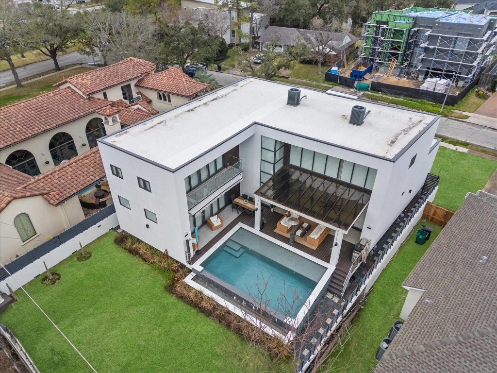 This beautifully crafted home, nestled in the heart of Meyerland, is a stunning representation of modern luxury living. Built in 2022, it offers an unparalleled blend of elegance and functionality, where natural light pours in from every angle, The open-concept design effortlessly connects the chef-inspired kitchen, featuring cutting-edge appliances. The first-floor primary suite is a sanctuary of sophistication, offering a spa-like bathroom and an expansive walk-in closet, Outside, your private oasis awaits complete with a resort-style pool, offering the perfect blend of relaxation and luxury. Upstairs, a floating staircase leads to additional bedrooms and a spacious game room/office, providing ample space for all of life's activities. Finally, unwind on the secluded terrace, where you'll be captivated by sweeping views of Houston’s skyline, This home is truly an entertainer's dream and a peaceful haven in the heart of the city.