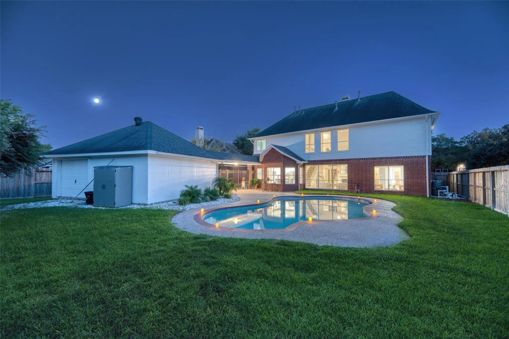 Welcome to this beautiful two-story home in the highly sought-after Green Trails Park community! Featuring 5 bedrooms, 3.5 baths, a game room, and a pool, this home offers the perfect balance of space, comfort, and style. The primary suite is conveniently located downstairs, along with formal living and dining areas ideal for entertaining. The spacious kitchen opens to the family room, creating a warm and inviting flow throughout. Upstairs offers four bedrooms and a large game room, perfect for family or guests. Step outside to your private backyard oasis with a sparkling pool, patio space for outdoor dining, and a detached two-car garage. Enjoy tree-lined streets, nearby trails, parks, and easy access to I-10 and the Energy Corridor—all within the award-winning Katy ISD. A rare find combining timeless charm, thoughtful layout, and resort-style outdoor living in one of Katy’s most desirable neighborhoods!