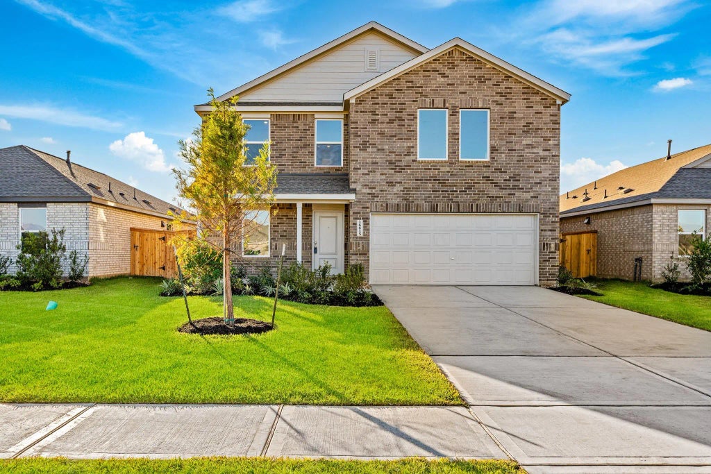 Brand new 4-bedroom 2.5 bath home located in The Grand Prairie in Hockley. Welcoming front porch allowing access to the formal Entryway, enter into the family room with views over the back yard. Open Concept living space with lots of Natural Light. Kitchen comes with Refrigerator, quartz counters, deep stainless steel sink and White Cabinets. Counter has enough space for Bar stools and is open to the dining area. Work your way upstairs to the wonderful game room, other bedrooms and the game room. Primary Suite on the first floor faces the back of the property with ensuite bathroom, walk in shower, a sink, quartz counters and large walk in closet. Other 3 bedrooms have a similar size and share a bathroom with shower/tub combo. Close to Highway 290 and an easy commute to Tomball, Spring. Close to dining, shopping. This home is move in ready with a brand-new washer, dryer and refrigerator making move in easy.