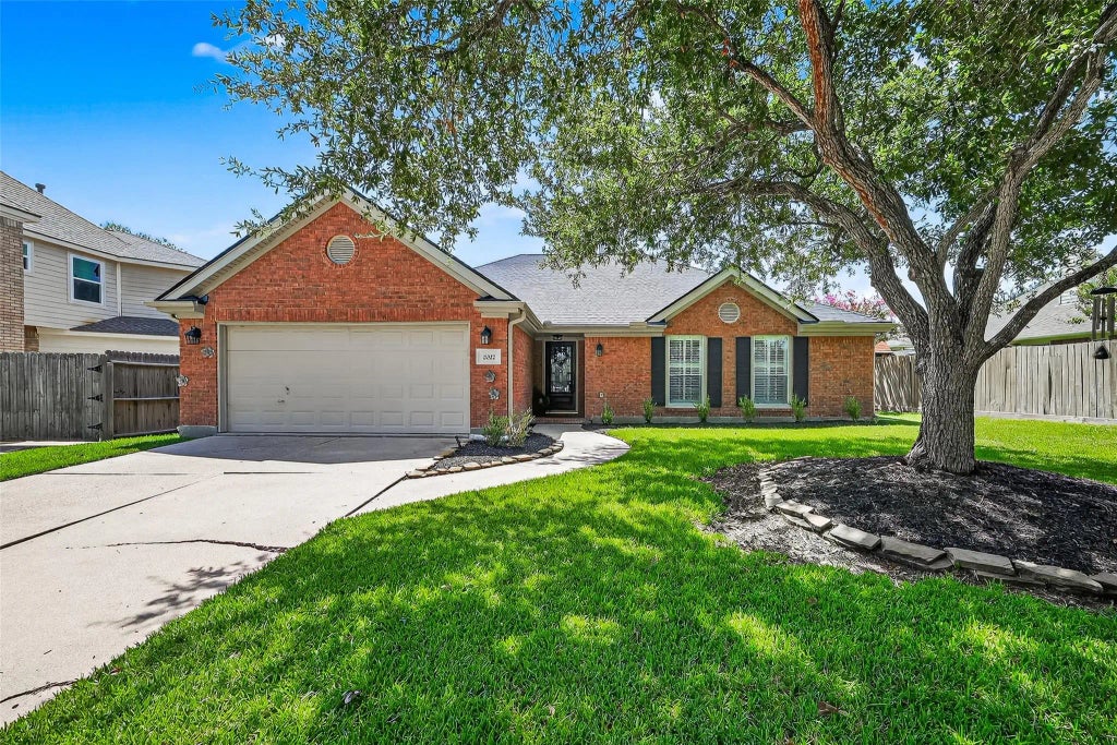 Your search Stops Here! Welcome home to this meticulously kept home with beautiful accents located on a cul-de-sac lot! Roof replaced in 2024! Enjoy the Large spacious family room with its fireplace and wood-like tile flooring here and in the Dining room and entry too! A fabulous floorplan with a light and bright kitchen that boasts an abundance of cabinet and counterspace and a glass cooktop. The Primary Bedroom is spacious and the Primary Bathroom offers double sinks, a large garden tub and a separate shower. The backyard is a must see with the tranquil pond that takes center stage. This charming home has brick on all 4 sides plus aluminum siding. This home is close to the Elementary school and Zoned to FBISD top rated schools! Close to area shopping and restaurants too! This home is a must see!