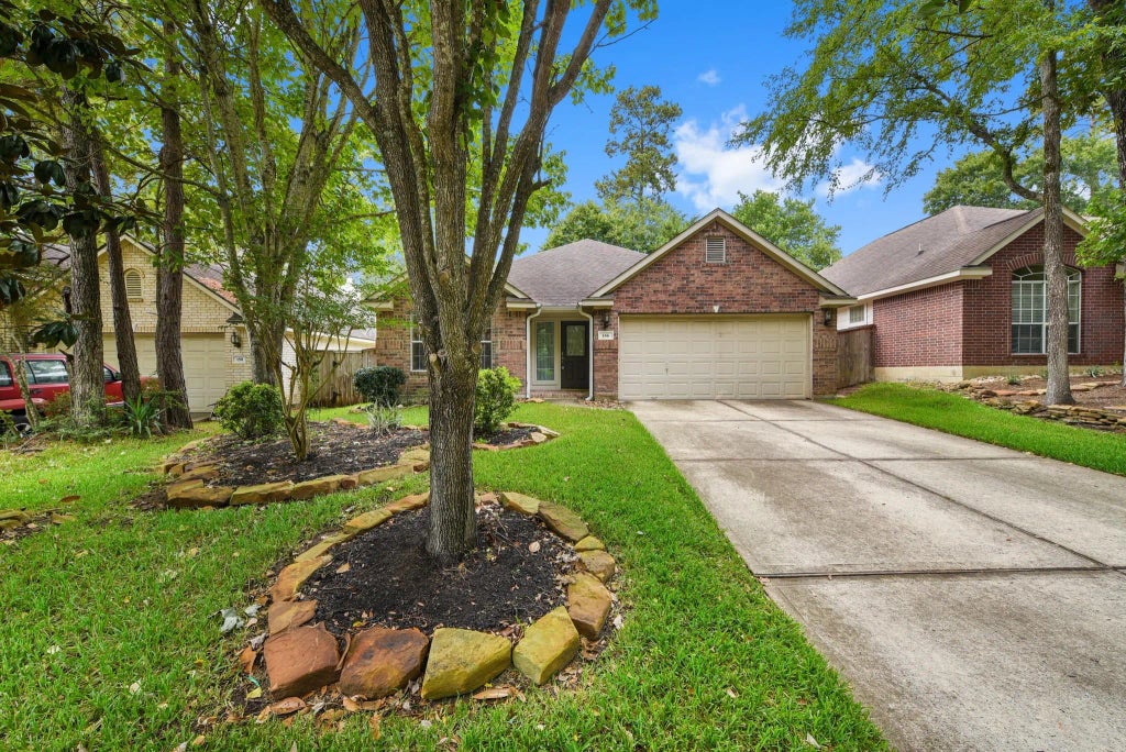Nestled in The Woodlands with easy access to I-45, this open-concept home offers high ceilings, abundant natural light, and a spacious kitchen with breakfast bar, island, and adjoining dining and family rooms. The primary suite includes a soaking tub and separate shower. Two additional bedrooms, a full bath, and laundry room complete the interior. Washer, dryer, and refrigerator included. Enjoy a private fenced yard with mature landscaping and an expansive deck for entertaining.