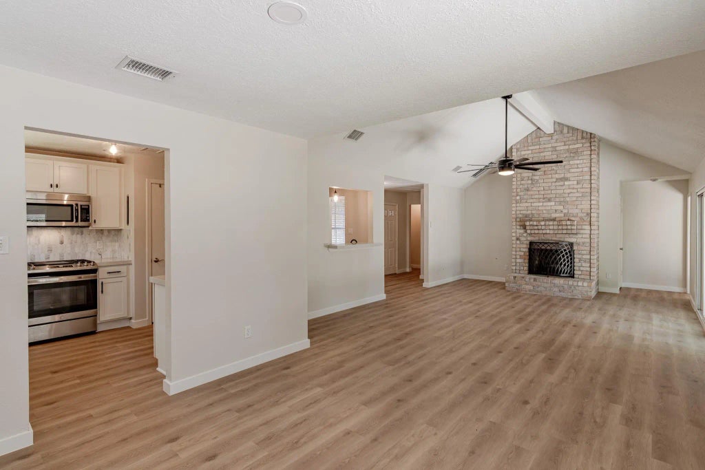 Welcome home to this completely renovated, move-in-ready home located on a quiet cul-de-sac in the heart of Grogan’s Mill, just seconds from I-45 and The Woodlands Town Center! Charming walkway with a gated courtyard entry that leads into a spacious, light-filled interior. Inside, the home features an open floor plan with high ceilings and no carpet throughout, offering both style and practicality. The oversized living and dining room combo flows seamlessly into a beautifully updated kitchen with a breakfast bar and stainless steel appliances, including a refrigerator. Spacious bedrooms, large closets, and updated bathrooms provide comfort and functionality. Enjoy the huge newly fenced backyard with a patio/deck—perfect for entertaining. Available immediately. Good credit and employment history required.