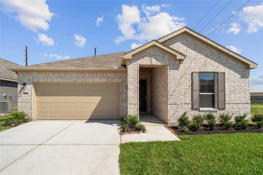 KB HOME NEW CONSTRUCTION - Welcome home to 1523 Grand Olympia Drive located in Olympia Falls and zoned to Fort Bend ISD! This stunning home sits on a lot with NO BACK NEIGHBORS and features 3 bedrooms, 2 full baths, and an attached 2-car garage. Additional features include stainless steel Whirlpool appliances, 42" Woodmont Cody cabinets in Ginger stain, granite kitchen island, Den, 2 sinks in primary bathroom, vanity with knee space in secondary bathroom, 2" faux wood blinds, 8' Entry Door in Dark Walnut, SmartKey/SmartCode Entry Door Hardware, black exterior coach lights, front gutters, and rear extended patio slab. This beautiful home with be sold with ALL FURNITURE! You don't want to miss all this gorgeous home has to offer! Call to schedule your showing today!
