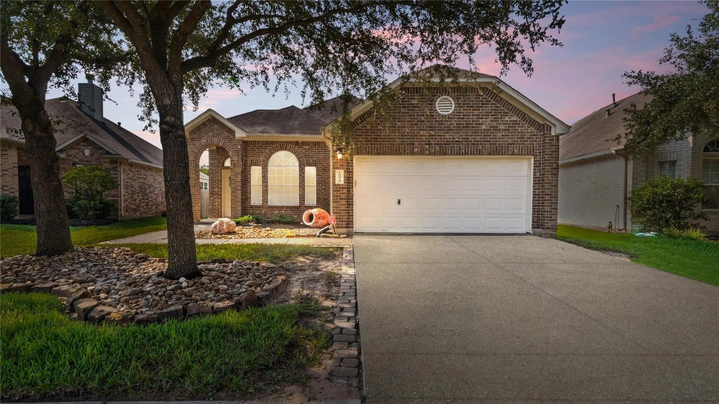 Eye-catching curb appeal with beautiful stone beds and brick-lined sidewalk and driveway - this house is one that stands out as you drive down the street! Step inside to find NEW CARPET throughout the open living room and three secondary bedrooms. The spacious family room is open to the eat-in kitchen, where you will be pleased to find a center island providing added cabinetry and work-space plus stainless appliances and 42" cabinets. Plenty of natural light keeps this home nice and bright! Primary suite with bay windows and extra seating space, dual closets. Ensuite bath with walk-in shower, soaking tub and dual sinks. Two secondary bedrooms plus a full bath with tub/shower combo. Outside you will enjoy a covered patio area PLUS extended patio with still plenty of green space. Attached 2-car garage.