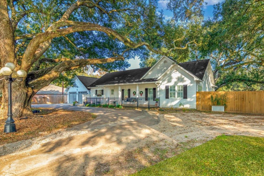 Nestled on a 3/4 acre lot, this sunlit home boasts mature live oaks and charming details. Less than 8 years old, it features ample natural light, split bedrooms, 2 living areas, and a spacious kitchen with granite countertops and gas stove. The master suite offers tree-lined views, a walk-in closet, and oversized bathroom. A covered breezeway leads to a 2-car garage with workshop. Located in Beaumont's West End, this property includes a hot water on demand system, rain gutters, and storm drainage. Don't miss out on this never flooded gem! 3 beds, 2 baths, 2464 sqft, built in 2017, 32626 sqft lot.