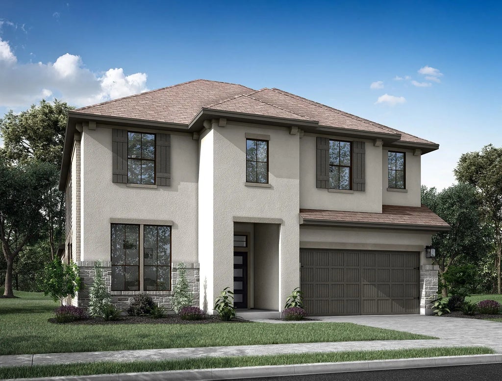 *CUL-DE-SAC LOT* A stunning two-story home situated with no direct back neighbors, with a stone & stucco exterior. Upon entering through the grand 8-foot entry, you are greeted by a 20-foot double-height foyer. The 8-foot interior doors create a sense of spaciousness and grandeur. The foyer leads into an open concept area with a gracefully curved staircase with wrought-iron railing. The living area continues with a double-height ceiling. A cozy living room integrates an electric fireplace with an expansive 20-foot frame, a designated dining area, and a gourmet kitchen with built-in appliances. The first floor has a designated study and a secondary bedroom, and the primary suite boasts a spacious layout, large windows, and a luxurious ensuite bathroom with a standalone tub. Ascending the curved staircase to the second floor, where the game room opens below, and a dedicated media room equipped with dimmable lighting and pre-wired for speakers and a subwoofer.