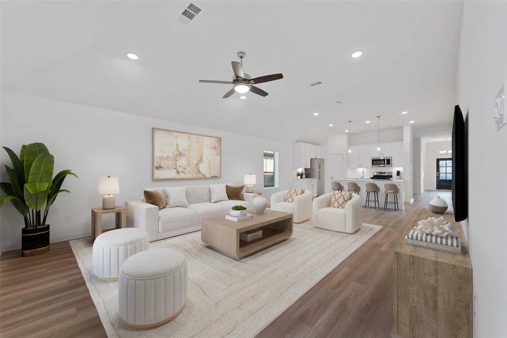Welcome to this beautifully finished one-story home in the highly desired community of Marvida. Built less than a year ago, this home feels brand new and showcases recent flooring throughout, soft neutral colors, and walls of windows that bring in incredible natural light. The open-concept layout connects the kitchen, dining, and living areas perfectly ideal for entertaining or everyday life. You’ll find four spacious bedrooms including a relaxing primary suite with a large bath and walk-in closet. 2 full baths are shared by the secondary bedrooms. Step outside to a generous backyard with no back neighbors, offering privacy and space for outdoor living, pets, or play. With modern finishes, an airy feel, and a community known for its amenities and convenience, this home is move-in ready and waiting for its next owners to love it.