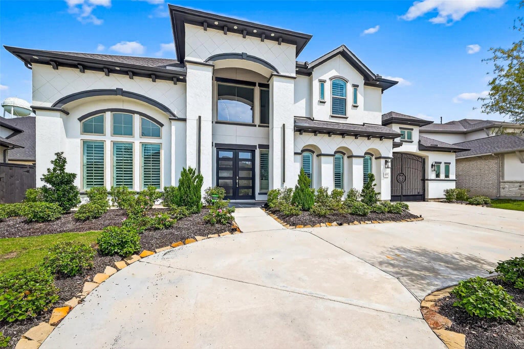 Welcome to this stunning 2 story full-stucco home with a circular driveway, perfectly situated in the highly desirable Harvest Green community. This open-concept residence features 5 bedrooms and 5.5 baths.Step into the gallery-style foyer, where your eye is immediately drawn to the dramatic double staircase—a true architectural statement. Huge family room with high ceilings and a sleek floor-to-ceiling tiled fireplace.The kitchen has quartz countertops, cabinetry with premium hardware, built-in stainless-steel appliances, large island kitchen with seating.This home has 2 primary suites, each with dual vanities, separate shower, walk-in closet. 3 additional bedrooms upstairs with full baths, huge game room, and a media room for endless entertainment options. Enjoy outdoor with extended covered patio, landscaping with a sprinkler system.Harvest Green community provides a vibrant lifestyle with exceptional amenities, making this home the perfect blend of luxury, comfort, and convenience.