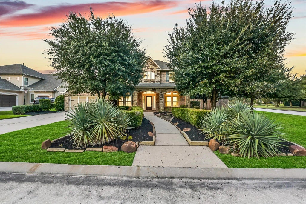 Located in the gated Fairway Crossing at Fall Creek, this former model home blends timeless elegance with resort-style living. Enjoy a private backyard oasis featuring a pool, spa, outdoor kitchen, fireplace, and large covered patio with lush landscaping - perfect for entertaining. Inside offers high ceilings, crown molding, tall baseboards, custom paint, and a multi-room audio system. Thoughtfully updated with a new roof (2022), AC (2023), and water heaters (2021). The flexible floor plan includes a formal dining room, private study, game room, media room, and spacious bedrooms. Just a short walk to lakes and the Golf Club of Houston, this home offers luxury, comfort, and an unbeatable location.
